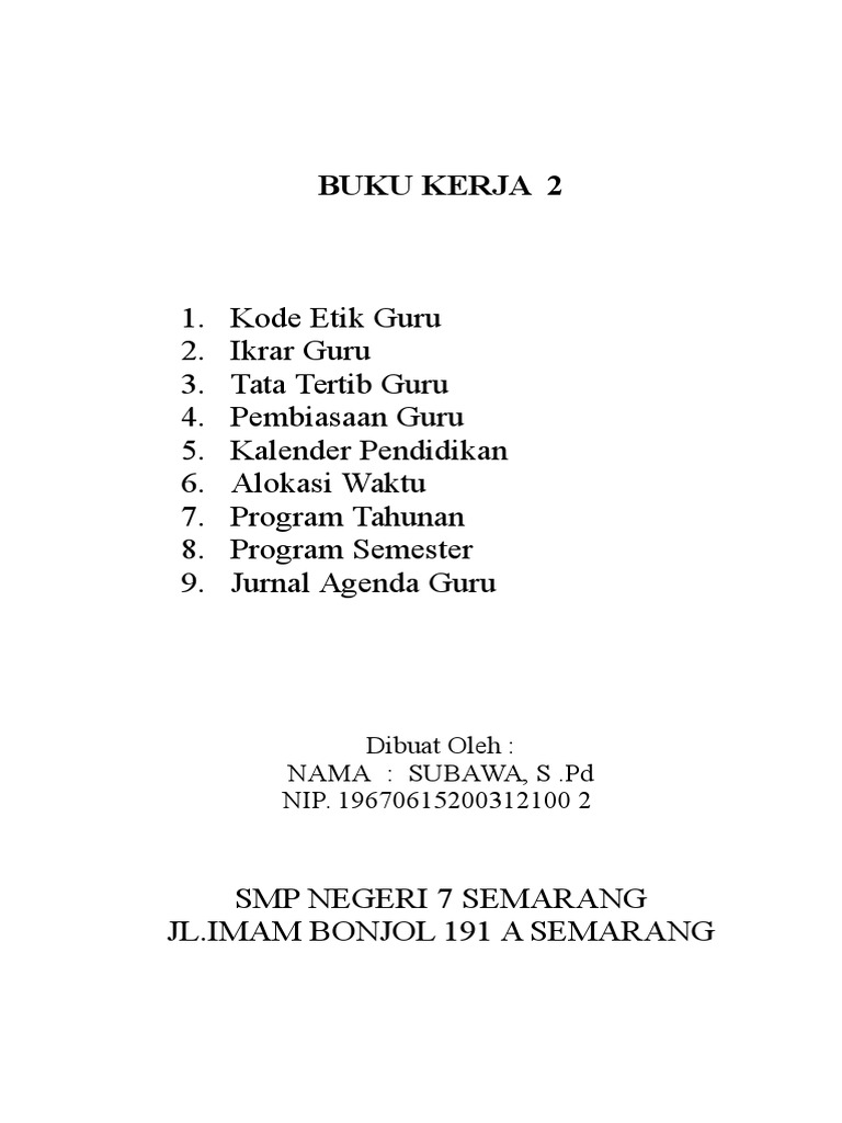 1 1 Cover Buku Kerja 1 Docx from imgv2-2-f.scribdassets.com Administrasi guru buku kerja 1 |1 buku kerja guru satu nama : Sebagai tenaga profesional, guru juga memiliki kode etik yang wajib dipenuhi. Format analisis hasil ulangan 6. Desain cover buku sangat keren yang bisa anda jadikan sebagai bahan contoh untuk membuat x banner, 61+ cover buku kerja guru 1 saat ini tidak bisa dipungkiri lagi bahwa cover buku merupakan sebuah alat yang memiliki peranan penting sebagai media promosi, baik untuk sebuah acara atau sebagai promosi produk, usaha dan. Toto herdianto, s.pd.i nip/nuptk/npk : Format program remidial dan pengayaan 7. Sampel buku guru 1 pdf. Cover buku, dapatkan banyak 31+ cover buku kerja guru doc pelanggan dengan paket cover.