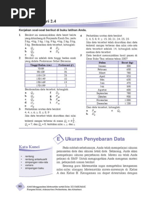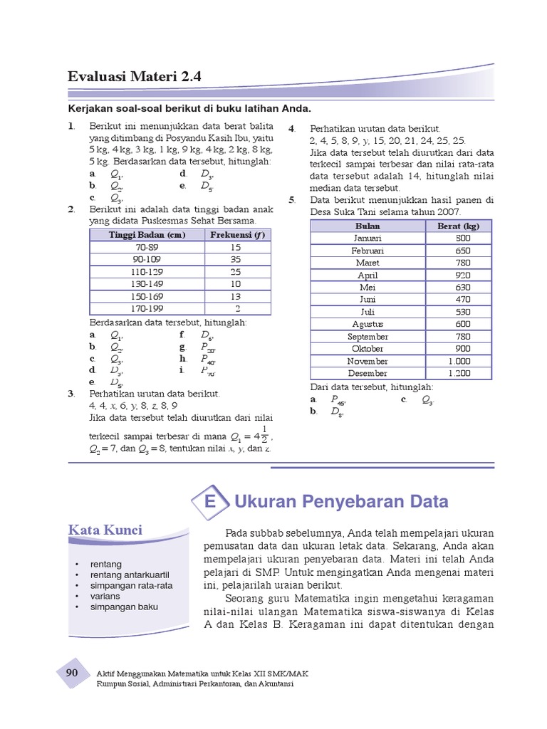 Ukuran penyebaran data (range, kuartil, simpangan baku dan variansi).